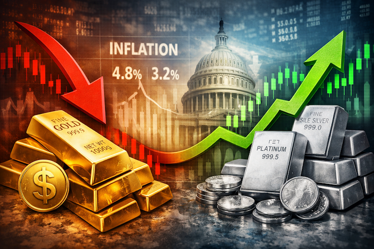 Ostatnie sesje na rynku metali szlachetnych przebiegają pod znakiem zwiększonej ostrożności inwestorów. Notowania surowców reagują jednocześnie na kilka istotnych czynników: oczekiwanie na kluczowe dane inflacyjne ze Stanów Zjednoczonych, zmieniające się prognozy dotyczące polityki monetarnej Rezerwy Federalnej oraz rosnącą zmienność na globalnych rynkach finansowych. W rezultacie obserwujemy wyraźne zróżnicowanie zachowania poszczególnych metali — złoto przechodzi krótkoterminową korektę, natomiast srebro i platyna utrzymują silny trend wzrostowy.